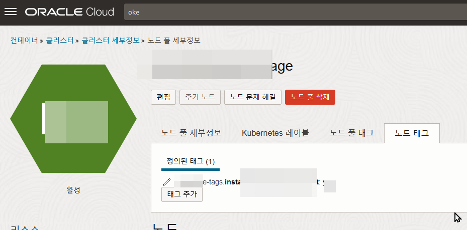 개인적 취향으로 태그를 부여해놓아야겠다 싶어서 노드 풀의 설정에서 노드에 자동으로 태그를 부여하게 해놨습니다.