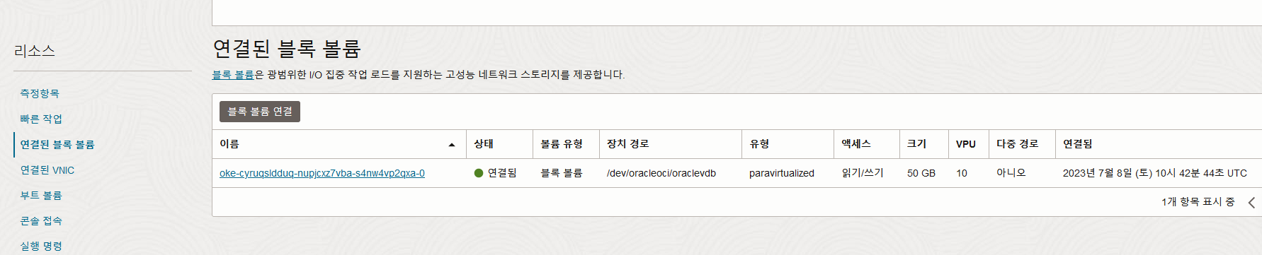Allow dynamic-group 'Default'/'내_동적_그룹' to manage volume-attachments in tenancy