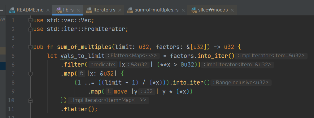 into_iter()를 써도 iter() 를 써도 clion-rust 는 filter에서 &&u32 랍니다.